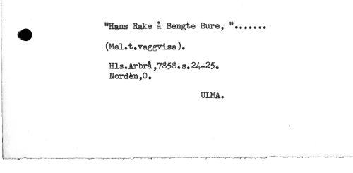 //// ^^ "Hans Rake å Bengte Bure, //// (Mel.t.vaggvisa). //// Hls.Arbrå,7858.s.24-25. //// Nordén,0. //// ULMA. ////