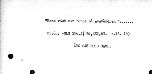 //// j //// "Hans rost man hörde på avståndren //// nr.63. =SLS 126,4^ R6,2Q3,63. s.16. (R) //// ÅBO SJÖBERGS SAML. //// B*' ////