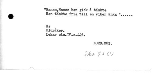 //// / //// *Hanse,Hanse han gick å tänkte //// ^ Han tänkte fria till en riker änka //// Hs //// Bjuråker. //// Lekar etc.IV.s.445. //// NORD.MUS. //// - , ^ / C. '' //// _____ ^ / ... .............. ..... __ ___^ ////