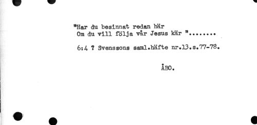 //// "Har du besinnat redan har //// Om du vill följa vår Jesus kär //// t //// 6:4 ? Svenssons saml.häfte nr*l3.s.77-78. //// ÅBO. //// c ////