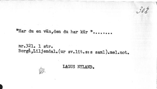 //// "Har du en vän,den du har kär "........ //// nr.32l. l str. //// Borga,Liljendal.(ur sv.lit.sts saml).mel.not. //// - LAGUS NYLAND. //// T ////