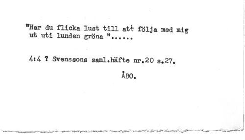 //// ) //// ) //// I //// "Har du flicka lust till at^r följa med mig i //// ut uti lunden gröna "...... //// : //// t //// * # t //// * //// 4:4 ? Svenssons saml.häfte nr.20 s.27. //// ÅBO. //// ! //// < //// ! //// ! //// ) //// t ////
