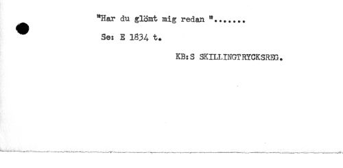 //// "Har du glömt mig redan //// Se: E 1834 t. //// KB:S SKILLINGTRYCKSREG. ////