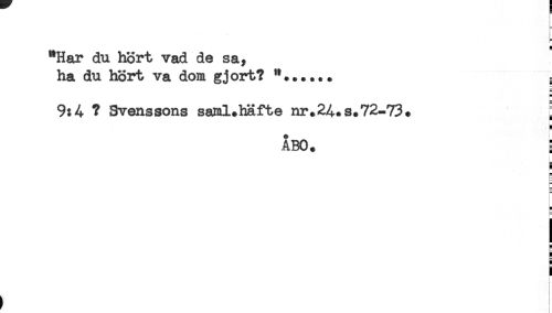 //// g //// "Har du hört vad de sa, //// ha du hört va dom gjort? "...... , //// 9:4 ? Svenssons saml.häfte nr.24.s*72-73* : //// ÅBO. //// E //// B //// E //// i //// t ////
