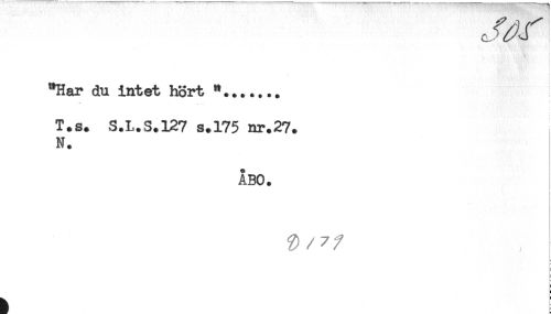 //// - . ; ' . A.: ) //// i //// < ! //// < //// t //// "Har du intet hört "....... //// T.s. S.L.S.127 s.175 nr.27. //// N. //// ÅBO. //// %}/7/ ////