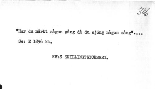 //// "Har du märkt någon gång då du sjöng någon sång".... //// Se: E 1896 kk. //// *< //// KB:S SKILLINGTRYCKSREG. ////