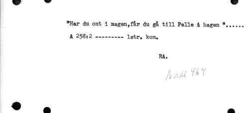 //// "Har du ont i magen,får du gå till Pelle it hagen "... //// A 2$8:2 ---- Istr* kom. //// RA. ////
