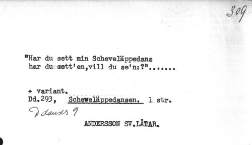 //// "Har du sett min Scheveläppedans //// har dur sett'en,vill du se'n:?"....... //// variant. //// Dd.293, ScheveTäppedansen. i str. //// ANDERSSON SV.IATAR. ////