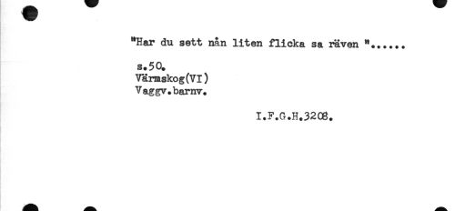 //// - //// ^Har du sett nan liten flicka sa räven "...... //// s.50. //// Varmskog (VI) //// Vaggv.barnv. //// I.F.G.H.3208. ////
