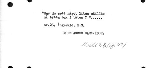 //// "Har du sett något liten sKallko //// må bytta bak i båten ? "...... //// nr.26. Ångermld. E.S. //// - //// NORDLANDER BARNVISOR. ////