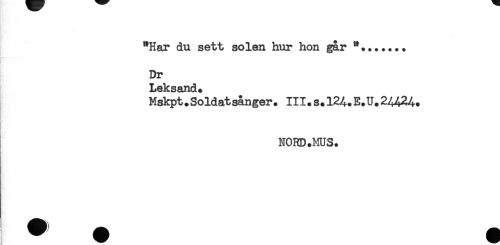 //// "Har du sett solen hur hon gar ...... //// Dr //// Leksand. //// Mskpt.Soldatsånger. III.s.124.E.U.24424. //// NORD.MUS. //// ^ y'' ^ ^ ^ ////