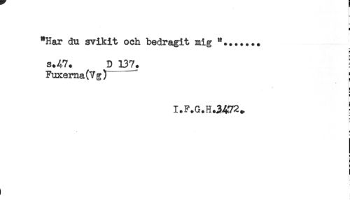//// < //// ) //// } //// "Har du svikit och bedragit mig "....... //// s.47. D B7. : //// Fuxema(Vg) " ; //// * //// ! //// i //// - //// I.F.G.H.3472. //// p //// B //// r //// ^ c ////