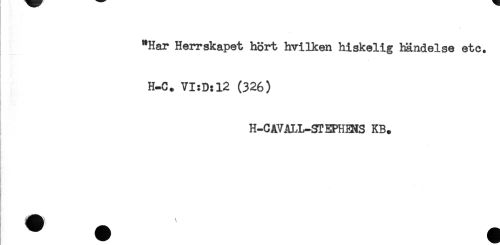 //// "Har Herrskapet hört hvilken hiskelig händelse etc. //// H-C. VI:D:12 (326) //// H-CAVALL-STEPHBNS KB. ////