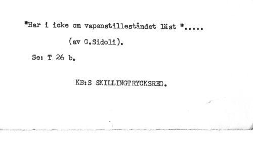 //// "Har i icke om vapenstilleståndet läst "..... //// (av G.Sidoli). //// Se: T 26 b. //// KB:S SKILLINGTHYCKSRES. ////
