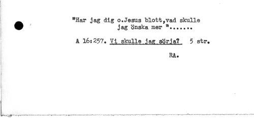//// < //// "Har jag dig o.Jesus blott,vad skulle //// ^ jag önska ner **....... //// ^ 257. Vi skulle jag sörja? 5 str. //// RA. //// * ////