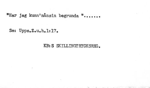 //// "Har jag ktrnn'nånsin begrunda //// Se: Upps.Z.u.h.l:17. //// Kms SKILLINGTRYCKSRBG. //// ^ . .. ^ t , . . ' * ... ^— - i.,..., ..-.'-- ^ ////