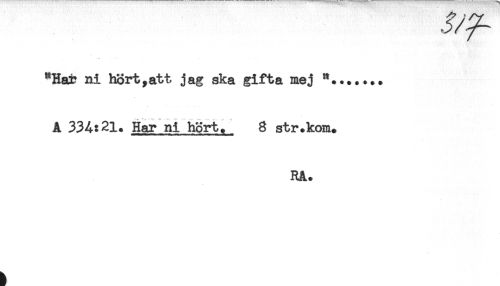 //// "Hai? ni hört,att jag ska gifta mej *....... //// A 334:21. Har ni hört. 8 str.kom. //// RA. ////