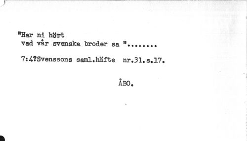 //// "Har ni hört //// vad vår svenska broder sa //// 7:4?Svenssons saml.häfte nr.31*s.l7. //// ÅBO. //// < //// ) //// i //// < ////