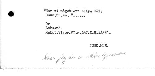 //// ^ "Har ni något att slipa har, //// Dr //// Leksand. //// Mskpt.Visor.VI.s.467.E.U.2433l. //// NORD.MUS. //// _____,_____ ////