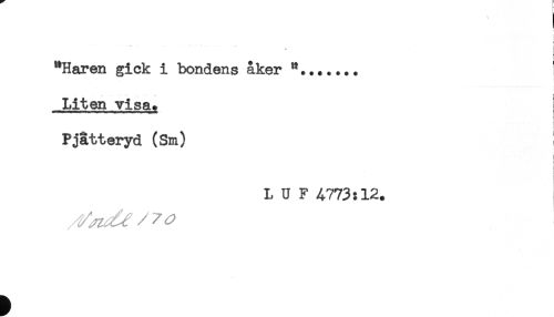 //// ! //// : //// "Haren gick i bondens åker ...... //// :. f //// Liten visa. //// : //// Pjatteryd (Sm) //// t //// L U F A773:12. ////