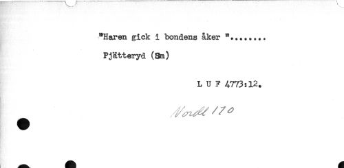 //// "Haren gick i bondens åker "........ //// Pjätteryd (Sm) //// L U F A773:12. ////