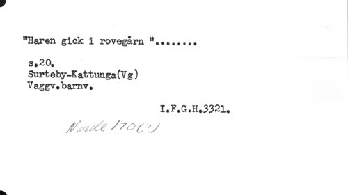 //// "Haren gick i rovegåm **........ //// s*20. //// Snrteby-Kattunga(Vg) //// Vaggv.bamv. //// I.F.G.H.3321. ////