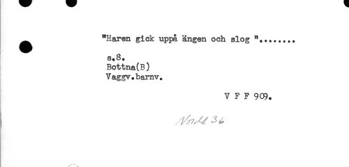 //// - //// "Haren gick uppa ängen och slog //// H' //// s.8. //// Bottna(B) //// Vaggv.bamv. //// V F F 9C9. //// / J ^ //// \ ////
