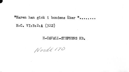 //// *Haren han gick i bondens åker **........ //// H-C. VI:B:2:A (322:) //// * //// H-CAVAU,-STEPHENS KB. ////