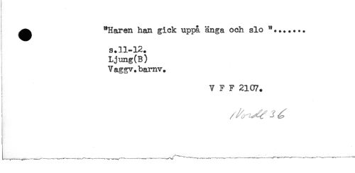 //// ^^ "Haren han gick uppa änga och slo "....... //// ! s.11-12. //// Ljung(B) //// Vaggv.barnv. //// i //// V F F 2107. //// i //// S ////