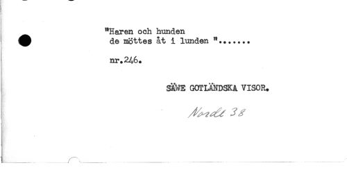 //// "Haren och hunden //// ^^ de möttes åt i lunden "....... //// nr. 246. //// SAME GOTLÄNDSKA VISOR. //// E //// f. //// ,....... ......... ....... ////