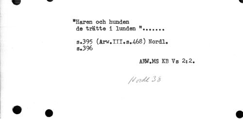 //// "Haren och hunden //// de trätte i lunden "....... //// s.395 (Arw.III.s.468) Nordl. //// s.396 //// AMT.MS KB Vs 2:2. ////