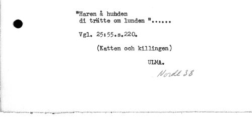 //// "Haren å huhden //// di trätte om lunden "...... //// Vgl. 25:55.s.220. //// ? //// (Katten och kil lingen) //// i //// ULMA. //// F ////