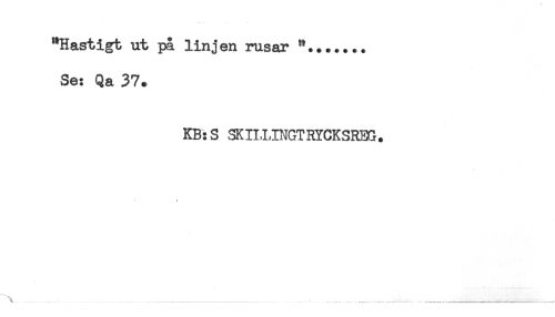 //// "Hastigt ut pa linjen rusar "....... //// Se: Qa 37. //// KB:S SKII.HNGTRYCKSREG. ////
