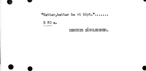 //// "Hattar,hattar ha vi köpt."....... //// D 80 a. //// DENCKER SANGLEKSREG. ////
