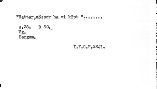 //// "Hattar ,mössor ha vi köpt ".*...... //// < //// i //// s.28. D 80. s //// vg. : //// Bergum. F //// H //// I+F.G+H+28<4!L* < //// H //// g //// i //// a ////