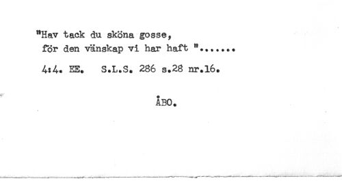//// "Hav tack du sköna gosse, //// för den vänskap vi har haft ".....*+ //// EE+ S.L.S. 286 s+28 nr.16. //// ÅBO. ////