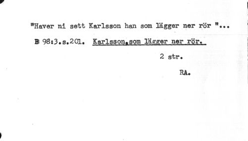 //// "Haver ni sett Karlsson han som Hgger ner rör "... ^ //// B 98:3.s.201. Karlsson.som Hänger ner rör. //// 2 str. ; //// < //// RA. ////