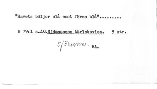 //// t //// r //// t //// "Havets böljor slå emot fören blå"......... //// B 79:1 s.AO.SjÖiaaRnens kärleksvisa. 5 str. ////