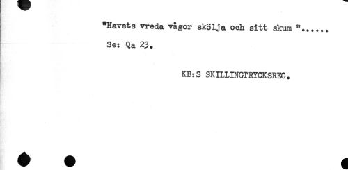 //// j "Havets vreda vågor skölja och sitt skum "...... //// Se: Qa 23. //// KB:S SKILLINGTRYCKSREG. ////