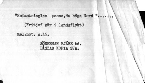 //// \ //// t%eimskringlas panna^du höga Nord *....... ^ //// (Fritjof går i landsflykt) 1 //// V \ 'å ^ //// mel.not. s.45. //// i % \ //// S&DERMAN BJÄRE hd. //// B&STAD KOPIA SVA. //// V //// t m tA //// A ^ ////