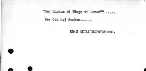 //// "Hej dunkoia så länge vi levom**...... //// Se: Och hej dunkoia...... //// ! //// KB:S SKILLINGTRYCKSRBG. //// ) //// < //// : //// j ////