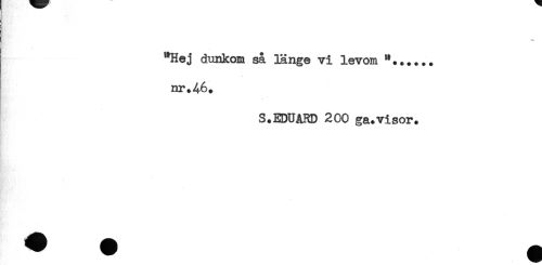 //// ' ** //// "Hej dunkom så länge vi levom *...... //// nr.46. //// S.EDUARD 200 ga.visor. ////