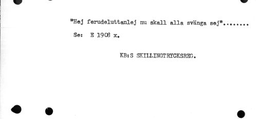 //// "Hej ferudeluttanlej nu skall alla svänga sej"......, //// Se: E 19C6 x. //// KB:S SKIH.INGTRYCKSREG. ////