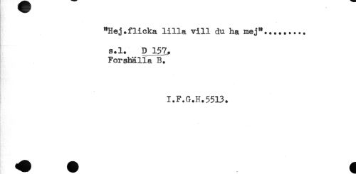 //// s.l. D 157. //// Forshälla B. //// I.F.G.H.5513. ////