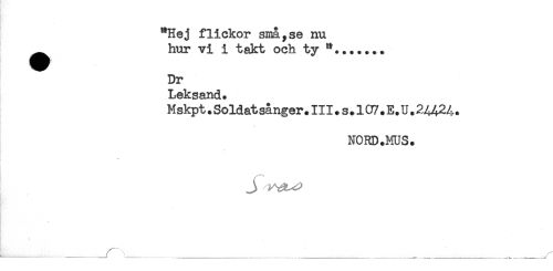 //// "Hej flickor små,se nu //// ^ hur vi i takt och ty "....... //// Dr //// Leksand. //// Mskpt.Soldatsånger.III.s.107.E.U.24424. //// NORD.HUS. //// J //// r //// t //// _ '. __ ______ ___ , ////