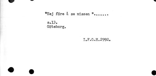 //// "Hej före å se nissen **....... //// s.13. //// Göteborg. //// I.F.G.H.2992. ////