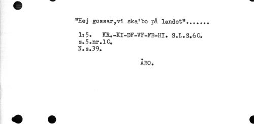 //// "Hej gossar,vi ska'bo på landet"....... //// 1:5. KR.-KI-DF-VF-FB-HI. S.I..S.60. //// s.5.nr.10. //// N.s.39. //// ÅBO. ////
