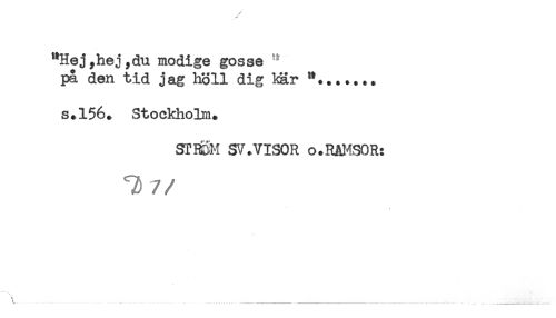 //// "Hej,hej,du modige gosse ^ //// pa den tid jag höll dig Mir //// s.156. Stockholm. //// ST RDM SV.VISOR o.RAMSOR: //// // //// t _... .... ////