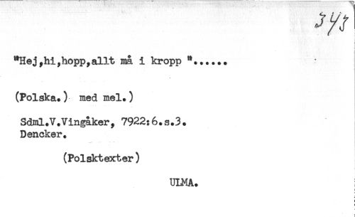 //// t //// i //// ^Hejyhi,hopp, allt må i kropp '*...... //// (Polska.) med mel.) //// Sdml.V.Vingåker, 7922:6.s.3. //// Denoker. //// t //// (Polsktexter) //// * //// < //// ! ////