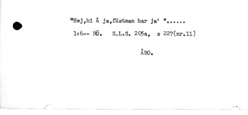 //// ^^ "Hej,hi å ja,fästman har ja' "...... //// 1:6— BÖ. S.L.S. 205a, s 227(nr.ll) //// ÅBO. //// . //// __ __ ___ _____ _ ___ ____ _ - ////